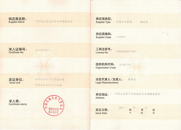 相關(guān)標(biāo)簽: 中國石油天然氣集團(tuán)公司物資供應(yīng)商準(zhǔn)入證