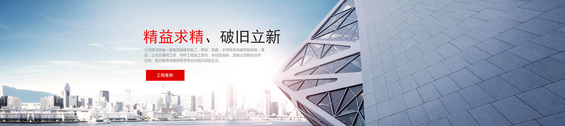 ??河南華鑫睿建筑工程有限公司成立于2013年11月份,是河南省一家集房屋建筑施工、各類(lèi)建筑物拆除及清運(yùn)、土石方、特種工程、地基基礎(chǔ)、鋼結(jié)構(gòu)工程等施工、廢舊物資設(shè)備回收的專(zhuān)業(yè)化企業(yè)。??公司注冊(cè)資金5600萬(wàn)元,具有河南省住房和城鄉(xiāng)建設(shè)廳頒發(fā)的《建筑工程施工總承包貳級(jí)》、《爆破與拆除工程專(zhuān)業(yè)承包叁級(jí)》、《地基基礎(chǔ)工程專(zhuān)業(yè)承包貳級(jí)》、《鋼結(jié)構(gòu)工程專(zhuān)業(yè)承包貳級(jí)》等資質(zhì)證書(shū)和有效的《安全生產(chǎn)許可證》。公司一直以來(lái)···